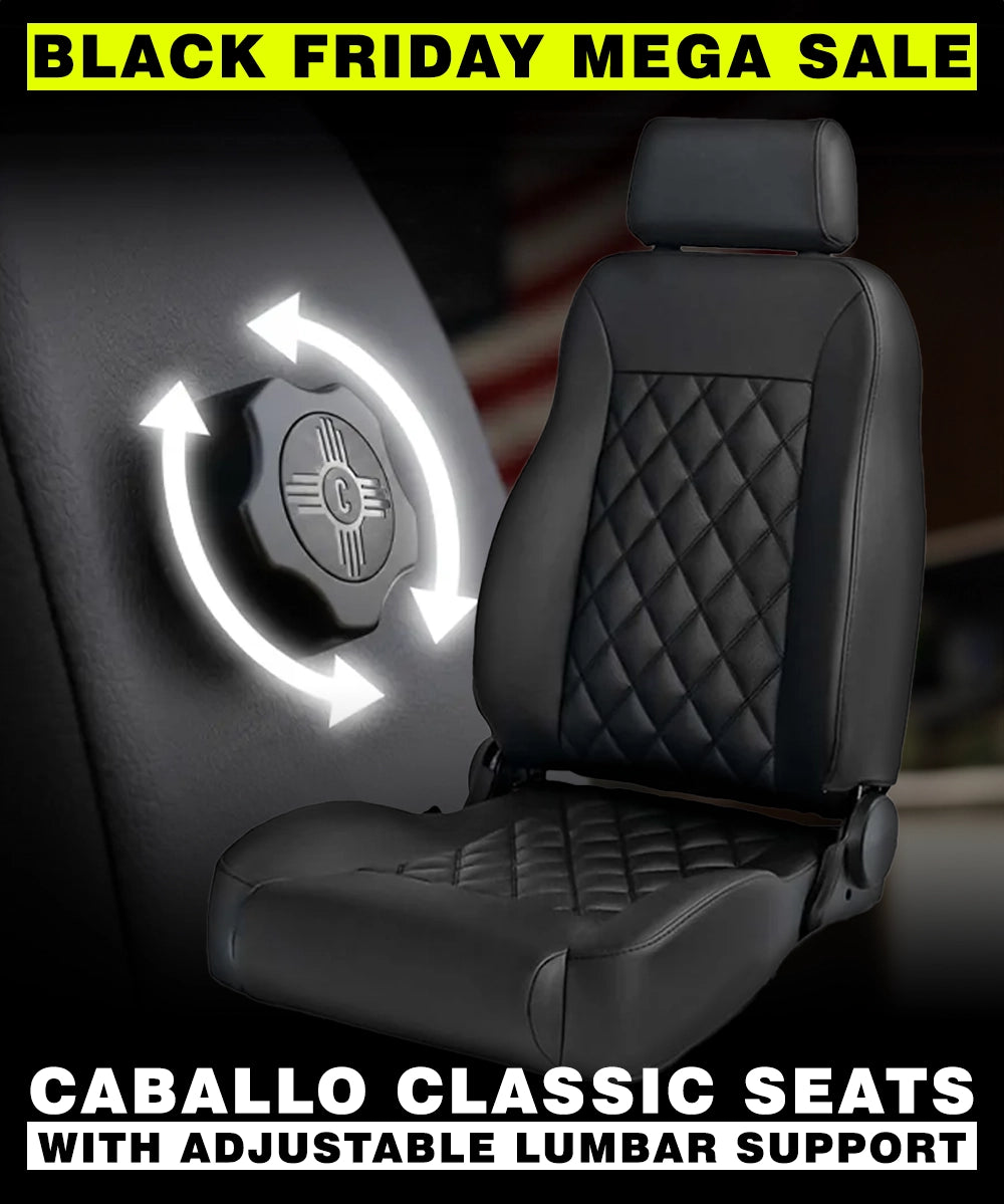 Caballo Classic Seats Kit | Front Buckets & Rear Bench | Rich Black | Diamond Stitch