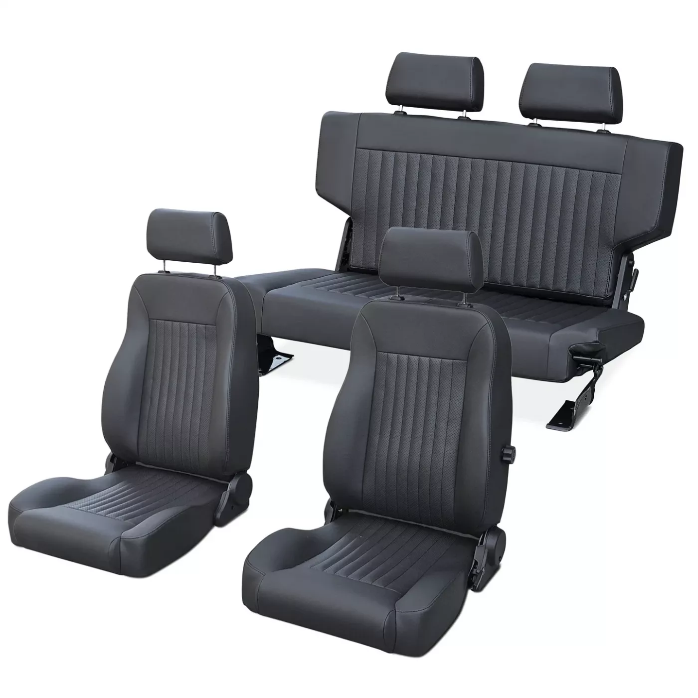 Caballo Classic Seats Kit | Front Buckets & Rear Bench | Rich Black | Vertical Pleats
